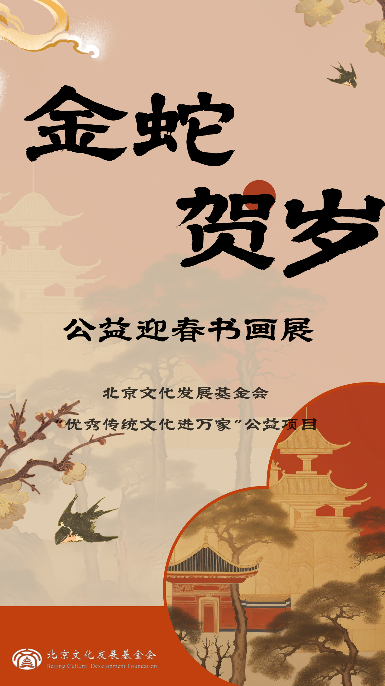 金蛇贺岁,公益迎春书画展 [爱心]展览时间: 2025年1月10日-1月12日 [爱心]地点: 北京出版集团京版大厦A座12层多功能厅